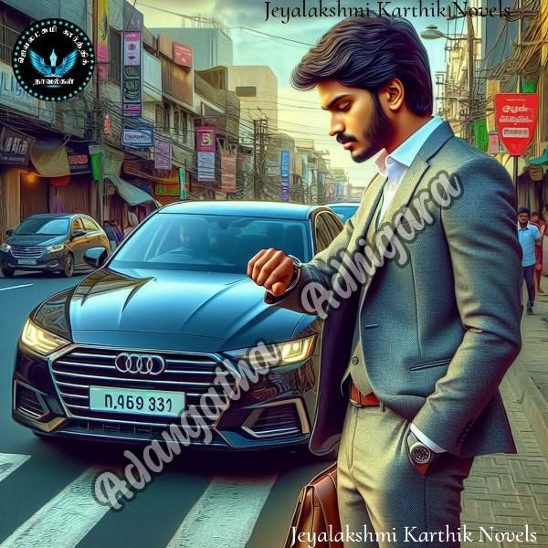 காரை ஒரு முக்கிய சாலையின் ஓரத்தில் நிறுத்தியவன் கைக்கடிகாரத்தை அவ்வப்போது பார்த்துக் கொண்டு சாலையையும் கவனித்துக் கொண்டிருந்தான்.