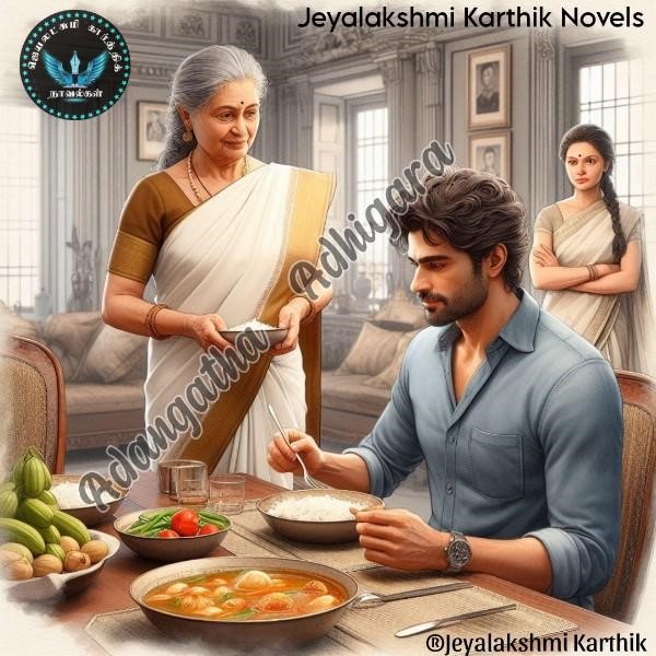 “இங்க பாரு, அந்த ஆள் வர வர சரி இல்ல. அவரை நம்பாத. அவ்வளவு தான் சொல்லுவேன். எல்லாத்தையும் அவன் கிட்ட கொடுத்துட்டு நீ என்ன பண்றன்னு எனக்கு புரியல. இதுல என்னை குறை சொல்லவும் என் அம்மாவை அசிங்கப்படுத்தவும் வந்துட்ட? கல்யாணமாகி இத்தனை வருஷமாச்சு, உன் புருஷன் என்ன பண்ணினான்னு யோசி. எங்களை சீண்டிட்டு இருக்காத. இனியும் அக்கான்னு பொறுமையா இருக்க மாட்டேன். போன தடவையே என்னை இப்படி பேச வைக்காதன்னு சொன்னேன்.” என்று காய்ந்தான்.